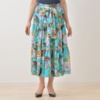 大胆な牡丹プリントが印象的な、ロング丈のティアードスカートです。ティアード部分には贅沢にスモック刺繍を施しました。