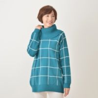 暖かみのある風合いのプリント素材を使用したチュニックです。襟ぐりは少しゆとりを持たせたハイネック。シャーリングを加える事で自然に立ち上がり、窮屈感なく着用できます。