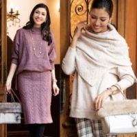 リュクス感ただようハイネックのニットチュニックと、スカートとしても使えるスヌードのセットです。柔らかくてもちっとした糸を使用。