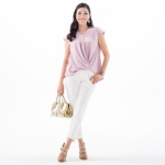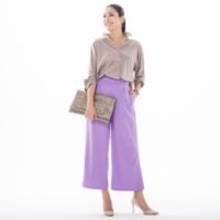 全体的に大きく、ゆったりとしたラインのバギーパンツです。フロントのセンターにはピンタックを入れて、脚長効果を演出。