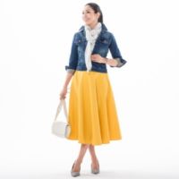 動きに合わせて裾が華やかに揺れる、女性らしい印象のフレアースカートです。ハリ感のある生地を使って、フレアー分量をたっぷりと取りました。
