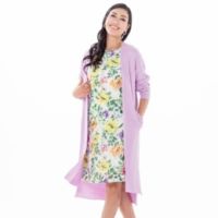 花柄のレースにフラワープリントを施した、贅沢な生地のワンピースです。総レースのエレガントさと華やかな柄を生かすために、デザインはシンプルに。