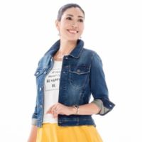 大人っぽく着こなせる、美しいシルエットのGジャンです。程よい厚さのデニム生地を使用。女性らしいラインが出るよう、ウエストがシェイプして見えるパターンにこだわりました。