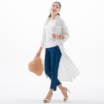 サラッとした肌触りのストライプの生地を使用した、羽織にもなるロングシャツをご紹介。背ヨークは後ろ中心に接ぎを入れ、柄をV字にデザイン。