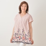 花柄が目を引く、華やかさのあるチュニックです。フロントヨーク下に、カラフルなチュール刺繍を重ねました。