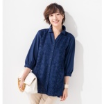 フロント部分に3Dの花柄刺繍を施した、薄手のブロード生地を使用したシャツチュニックです。立体感が見た目にも華やかで涼やかな印象。