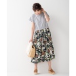 カットソーのTシャツと、プリントのスカートをドッキングしたワンピースです。身頃部分は、ストレッチ性のある無地の天竺素材を使用。