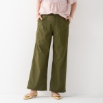 フロントの大き目なパッチポケットがデザインのアクセント。気になる太ももやヒップを視覚的にカバーし、細見えさせるパンツです。
