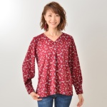 RosePeche Vネックプリントブラウス