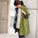ポリエステルのグログラン生地に撥水加工を施した、Aラインのコートです。衿と袖、前見返しには同素材の配色生地を使用。