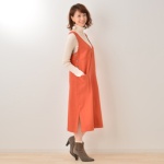 ・体型カバーしながら、フェミニンな着こなしのできるジャンパースカート・カシュクールデザインが女性らしく、カジュアル過ぎないので、大人の女性にぴったり・ロング丈で裾にスリットが入っているので足さばきが楽…