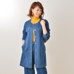 デニム生地の裏側に、特殊な裏地をボンディング。着丈のしっかりあるノーカラーコートです。デニムGジャンのカジュアルさを残しつつ、上品見えするデザインに。