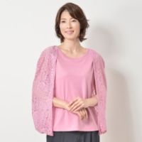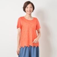 裾部分に立体感のある3Dレースをあしらった、1枚で華のあるチュニックです。身生地はなめらかでとろみも感じる肌あたりの心地よいスムース素材を使用。