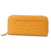 表側にオーストリッチ革を使用した長財布です。ラウンドファスナー式で、ジッパーをあけると中の物を見渡すことができます。
