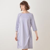 シャンブレー素材を使用した、さらりとした肌触りの良いワンピースです。首につくことがない離れた衿の、ファーラウェーカラーがポイント。