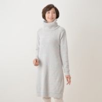 部屋着として、ゆったりとくつろげる素材で仕立てたワンピースです。軽くて柔らかいモール糸で編んだ生地を使用。