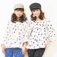 ポップなハート&星&コスメ柄を描いた、&LOVEオリジナルの総柄プリントがキュートなプルオーバー。
