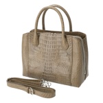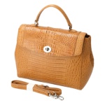 カイマンワニ革を使用した2WAYハンドバッグをご紹介。バッグ前面は、カイマンワニ革が持つダイナミックさが印象的なデザインです。