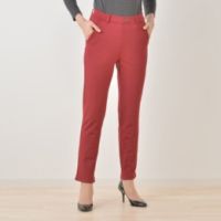 スリムストレートのラインで美脚を演出する、ストレッチパンツです。伸縮性があって穿きやすい、裏パイルのデニム見えする素材を使用。