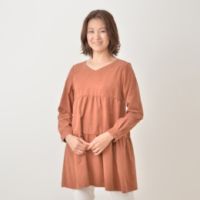 トレンドのティアードデザインで、大人可愛い装いを楽しめるチュニック。生地には、表面感をピーチ起毛した、柔らかくて軽やかな素材を使用しました。
