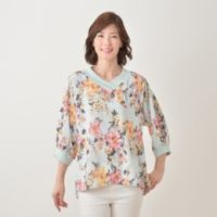 ぼかし柄のフラワープリントが華やかなプルオーバーです。生地にはしなやかなデシン素材を使用し、一枚仕立てで長いシーズン活躍。
