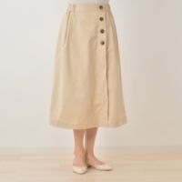 大人の女性に似合う、チノクロス素材のラップ風スカートをご紹介。チノというとカジュアルでナチュラルなイメージですが、こちらはポリエステルでやや光沢もある、きれい目な素材感。