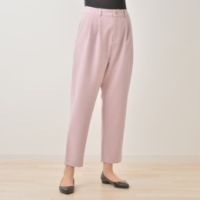 裾をリブで仕上げた、ジョッパー風パンツです。さらりとした肌ざわりの布帛素材を使用。後ろウエストはゴムを使用し、ヒップ周りはゆったりとしたシルエットで窮屈感なくお召しいただけます。