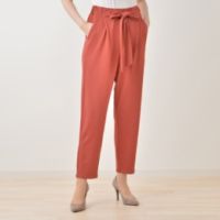 「anywise」より、ウエストのサッシュリボンが可愛らしい、テーパードパンツをご紹介します。生地にはレーヨン混のポンチ素材にエニワイズ加工を施し、サラッとした穿き心地に。