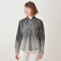 薄手のデニム生地で仕立てた、刺繍たっぷりのデニムシャツをご紹介。オリジナルのシザー刺繍を総柄で施した生地で、ハサミのデザインにブランドらしいポップさを演出しています。