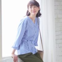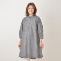旬のストライプ生地で仕立てた、シャツワンピースです。シャツカラーが、カジュアルな中にもきちんと感を演出。
