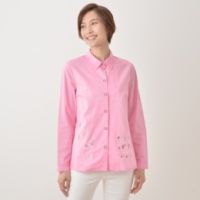 カラフルな刺繍が可愛らしいシャツです。微光沢が上品な印象を与える、コットン100%のシャンブレー素材を使用。