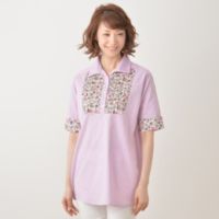 前ヨーク部分をリバティプリントで切替えた、華やかなシャツチュニック。独特の霜降り状の色合いがナチュラル感のある、綿100%のシャンブレー生地に、シルクを思わせる質感の綿100%ローン素材のリバティプリ…