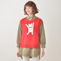 シャツの前身頃にニットベストの前身頃部分を重ねました。メンズライクな衿元、ゆったりしたギャザー袖で、シャツ自体もこだわりのあるデザインです。