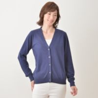 季節の変わり目にも便利に着まわせる、軽く羽織れるカーディガンです。ハイゲージできれいめな編地は、薄手で軽く、さらりとした着心地。