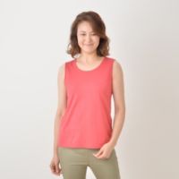首元をきれいに見せてくれる、ラウンドネックのタンクトップです。シンプルなデザインなので、色々なアイテムと合わせやすく、多彩にコーディネート。