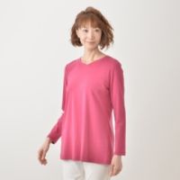 コットンカシミヤ Vネック 長袖 ロングプルオーバー