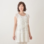 チュール素材のフリルがフェミニンな装いを演出する、プルオーバーをご紹介します。何層にも重なったティアードフリルが気になるボディラインをオシャレにカバー。