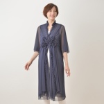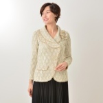 華やかなレースプリーツのロングジャケットです。パネルラインがあることで、スッキリとした印象に仕上げました。
