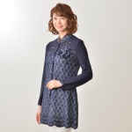 立体感のあるコードレースでエレガントに仕立てたワンピース。シンプルな身頃のデザインと、ふわりとしたスカートのシルエットで、様々な丈のジャケット類と好相性です。