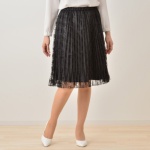 華やかで女性らしいレースを贅沢に使用しました。フレアタイプにプリーツをかけ、スカートの中盤辺りから再度プリーツをかけることで、広がりすぎないシルエットに。