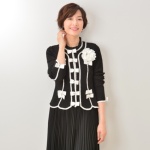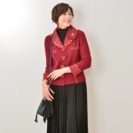 ファンシーツイードに季節感を感じるジャケット。ツイードの大きめの衿と縦のラインで、スタイルよく見せるデザインです。