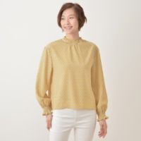 襟ぐりと袖先をシャーリング仕様にした、エレガントなブラウスです。さらりとした素材を使用して、軽い着心地に仕上げました。