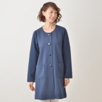 上品なノーカラーデザインの、グログランジャージーのライトコートです。ストレッチ性のあるカットソー編地を使用。