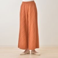 ニット素材のワイドパンツです。カジュアルエレガントなシルエットに、ケーブル柄がデザインのアクセントに。