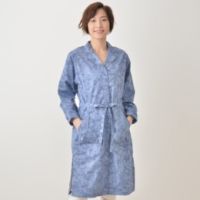 ボタニカルジャガードにムラ染めのプリントを施した生地を使った、ワンピースのご紹介です。衿ぐりをすっきり見せてくれる、オープンカラーのシャツ型デザイン。