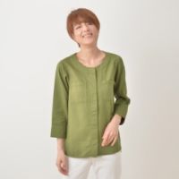 肌あたりの優しいWガーゼ素材で仕立てた、ノーカラーシャツです。2重に織ったWガーゼは適度な張り感と肉感があり1枚でさまになります。