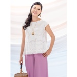 大人の女性らしく上品な柄が素敵なプルオーバーのご紹介。前身頃は綿混の生地に部分的にオパール加工を施し、透ける部分を作る事で、生地に立体感を持たせた高級感ある仕上がりです。