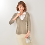 台衿付きのシャツを、Vネックのカットソーの下に着ているように見える、ドッキングデザインのシャツプルオーバーです。