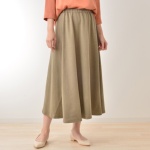 余計な装飾のないシンプルなディティールで、着回し力のあるギャザースカートです。生地にはオールシーズン活躍する、ほど良い厚みの素材を使用。