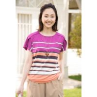 素材感と配色にこだわった、マルチボーダーの半袖プルオーバーです。まるでチューリップの花びらが重なったような、立体的な袖口が可愛らしいデザイン。